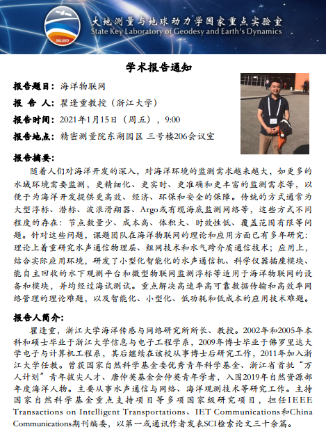 2021年1月15日PA真人国际大地测量与地球动力学国家重点实验室学术预告