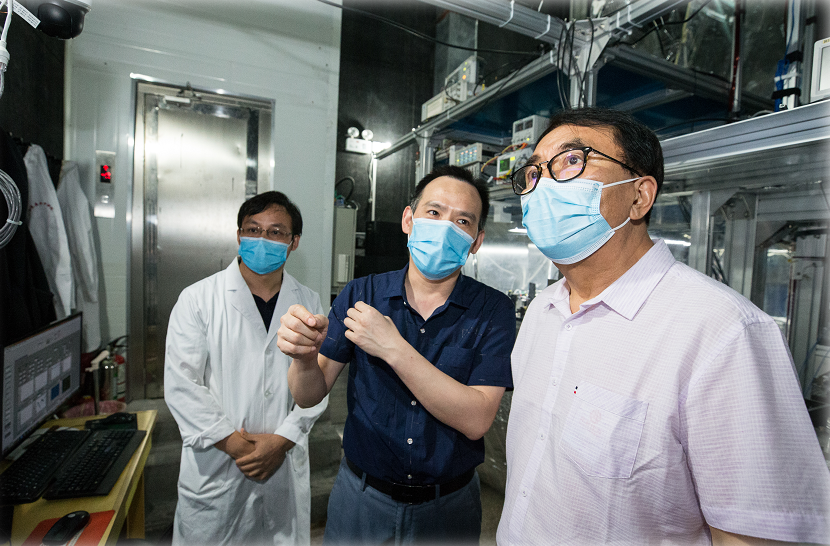 白春礼重点考察了PA真人国际星载铷原子频标实验室、十米原子喷泉实验室、人体肺部磁共振成像实验室。研究员梅刚华,副院长柳晓军、周欣分别作了详尽的介绍。梅刚华第一时间围绕星载铷原子钟的研究历程,当前的原子钟各方面的性能,北斗全球组网卫星中发挥的作用以及未来的研发方向进行了详尽的介绍。在十米原子喷泉实验室,白春礼察看了相关科学装置,听取柳晓军科研情况介绍,特别是构建沼山地下设施基础科学研究平台和量子技术原创平台的基本情况。在人体肺部磁共振成像实验室,周欣详尽的介绍了气体肺部磁共振成像系统成功“点亮”人体肺部,疫情期间在武汉金银潭医院、同济医院等投入使用情况,并简要的汇报了磁共振成像技术和装备在未来的开展趋势和建设构想。白春礼与研发团队深入研讨,详细询问相关装置、平台的国际竞争力、应用效果、人才建设以及科技合作与产业化情况。